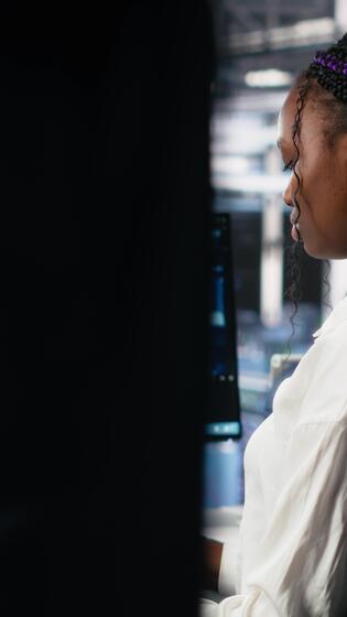verticale femmina programmatore nel dati centro recensioni ai diagnostica, analizzando neurale Rete prestazione. server centro esso esperto ottimizza artificiale intelligenza sistemi configurazione, telecamera un' Video Pro