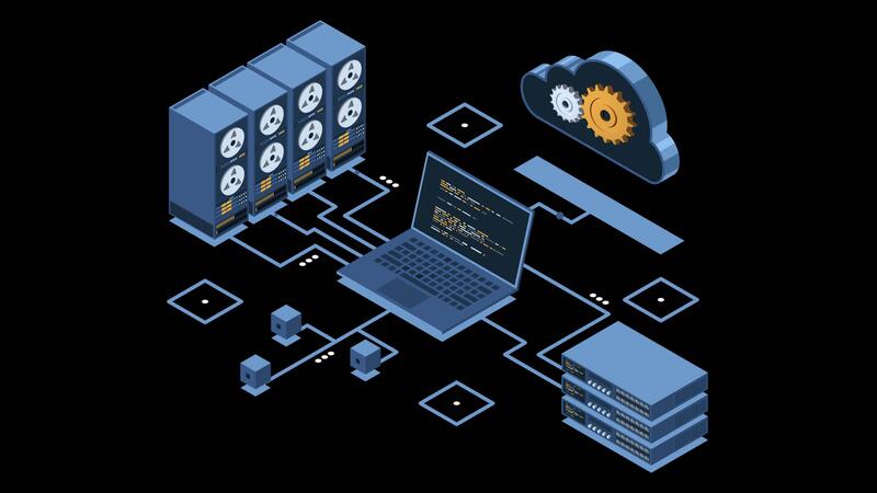 isometrico nube tecnologia calcolo animazione. nube Conservazione. isometrico Rete con computer, computer portatile, e server. isometrico tecnologia. trasparente sfondo con alfa canale Video Gratuito