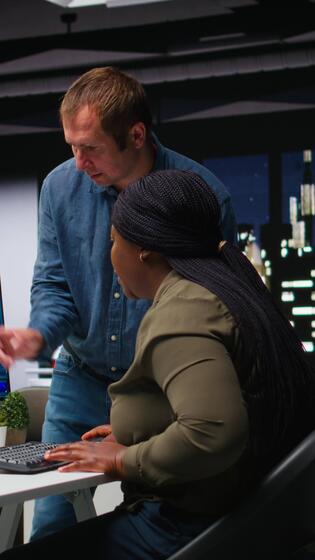 verticale multietnico editori squadra utilizzando ai macchina apprendimento per la modifica contenuto, neurale reti chatbot aiuta la modifica nuovo fotografie materiali. professionale progettisti utilizzando digitale Software. telecamera un. Video Pro