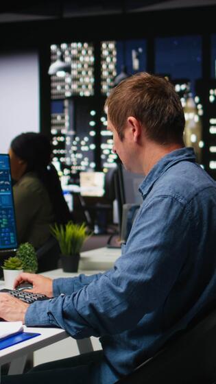 verticale diverso ingegneri squadra crea 3d rendere di appartamento interno con architettonico Software e progetti. utilizzando computer con moderno utensili e Modelli per permettere personalizzazione di pavimentazione. telecamera un. Video Pro