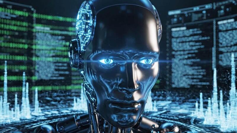 futuristico di robot sguardo ai e tecnologia nel messa a fuoco con digitale dati Schermo Video Gratuito