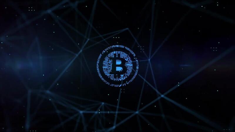 rotante bitcoin Rete simbolo con digitale blockchain connessioni. Video Gratuito