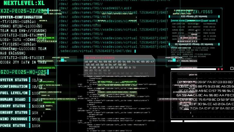 futuristico digitale interfaccia con verde codice e dati su nero schermo High Tech computer Schermo con astratto informazione fluire. Video Pro