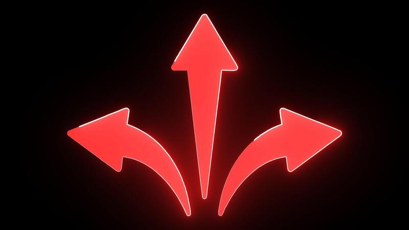 animato UHD rosso splendore a tre vie direzione freccia sovrapposizione, dinamico decisione scelta pointer elemento vfx Video Gratuito