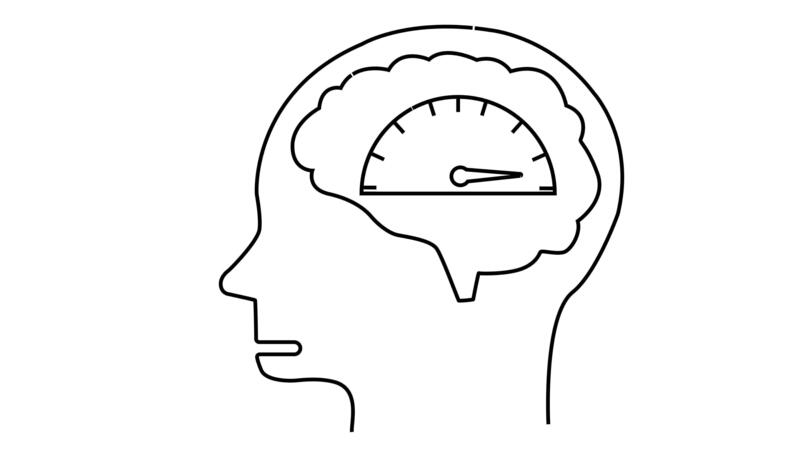 un' linea disegno mostrando un' profilo di un' testa con un' cervello contenente un' tachimetro Video Pro
