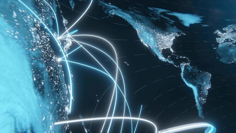 globalizzazione tecnologica della terra nell'animazione 3d. punti di affari globali sul pianeta rotante. Video Pro